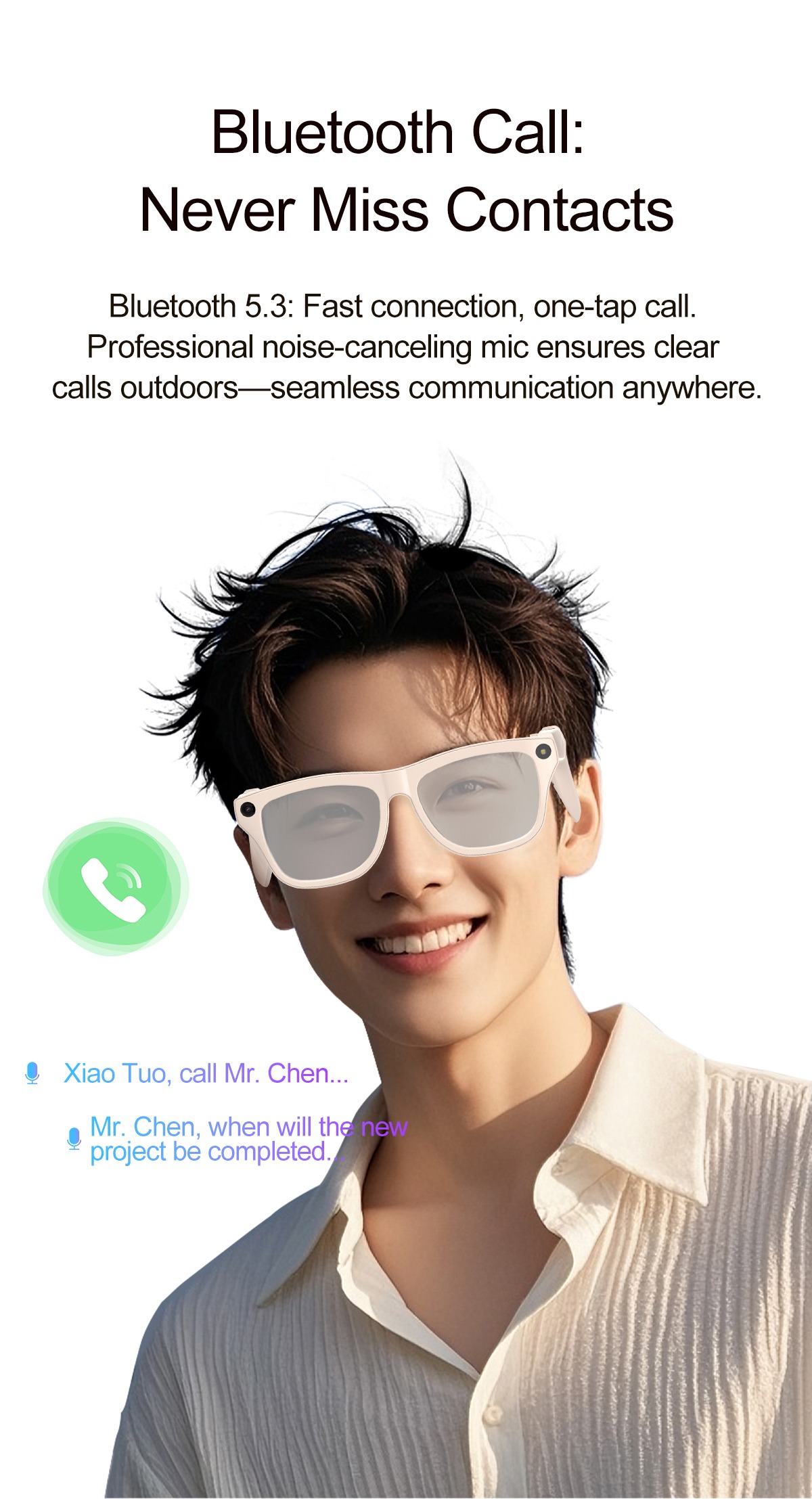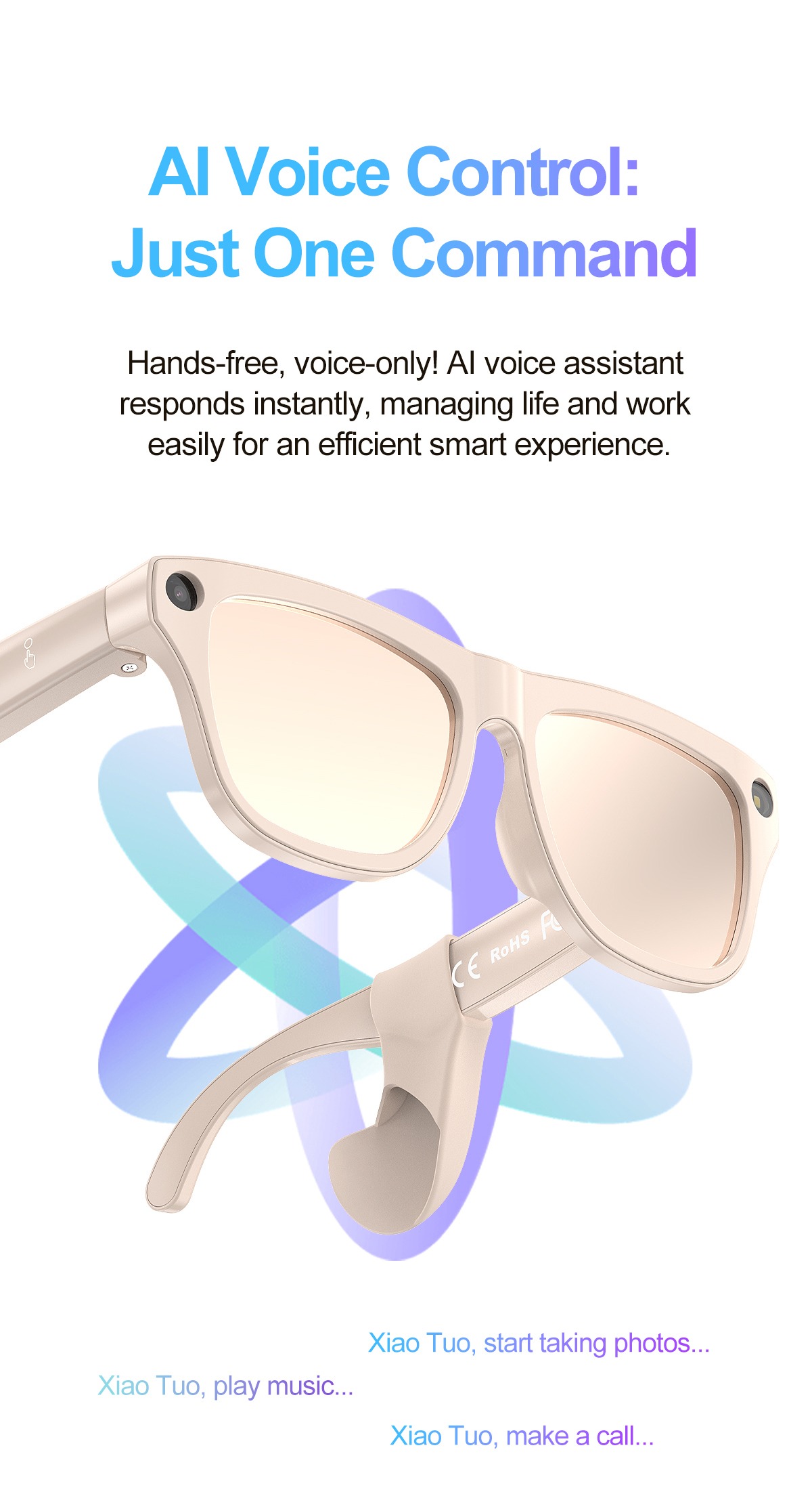 A: They support HD photo capture, voice recording, real-time translation, object recognition, music playback, and phone calls—all controlled via a companion mobile app.