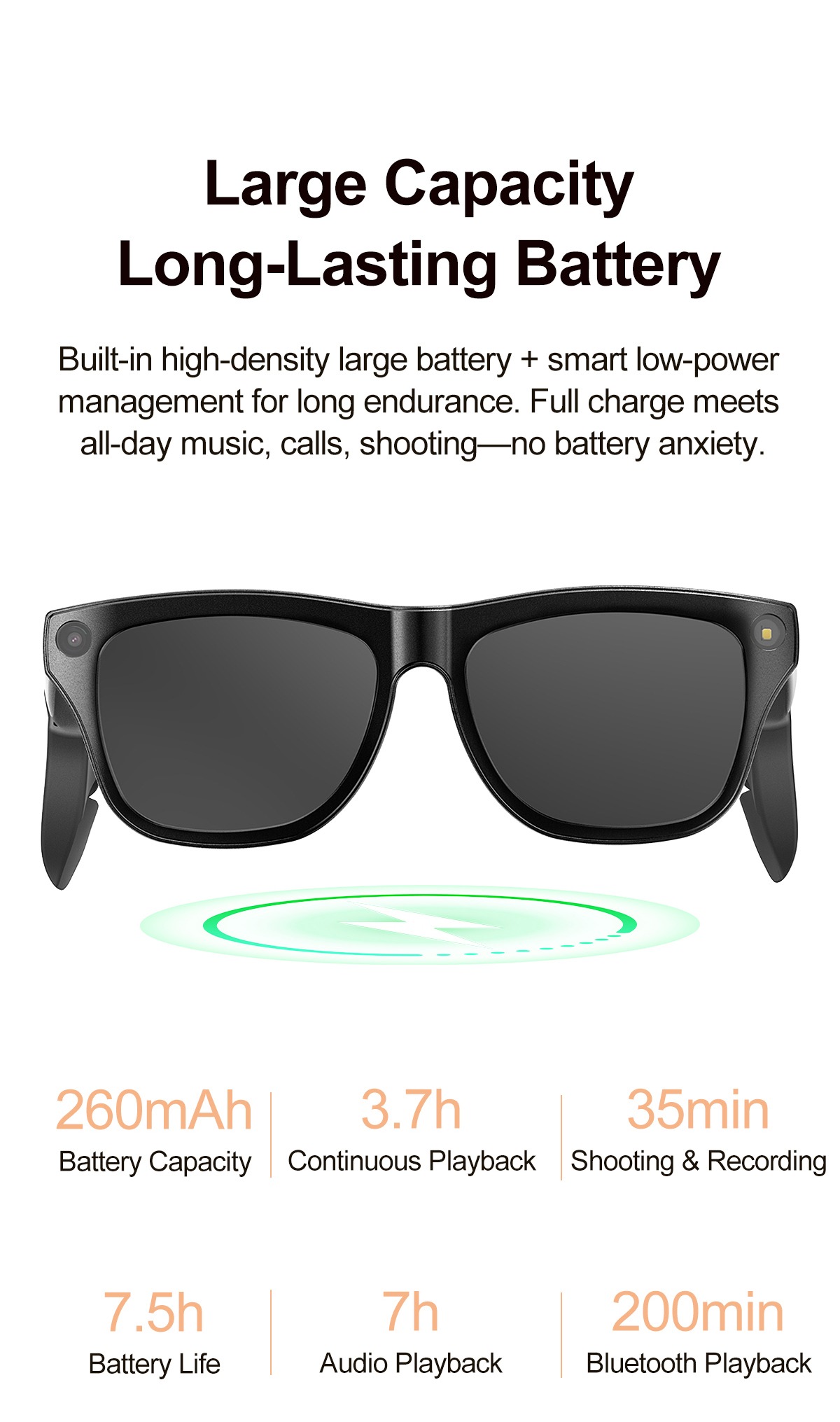 Built with precision electronics and a single high-definition camera, these smart glasses deliver consistent performance in dynamic environments. The magnetic charging system ensures durable, port-free power replenishment, while the app-controlled interface minimizes hardware wear. Integrated AI processing enables on-device or cloud-assisted real-time translation and object recognition, maintaining responsiveness without compromising battery efficiency.