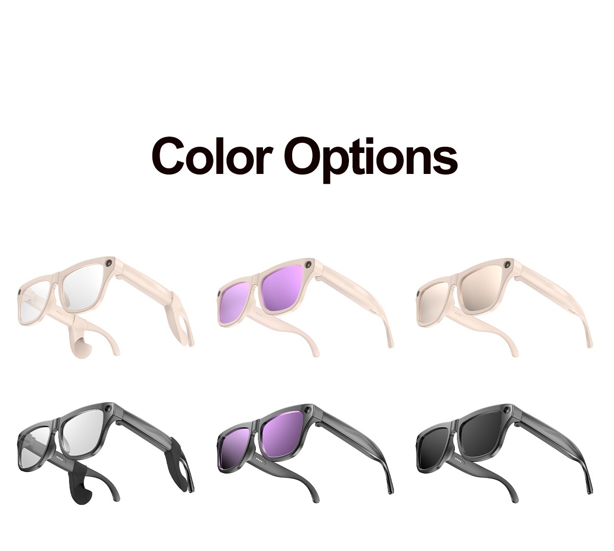 | Lens color: | Clear/Black/Purple | Power on/off method: | Single-side button power on |