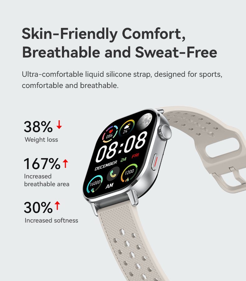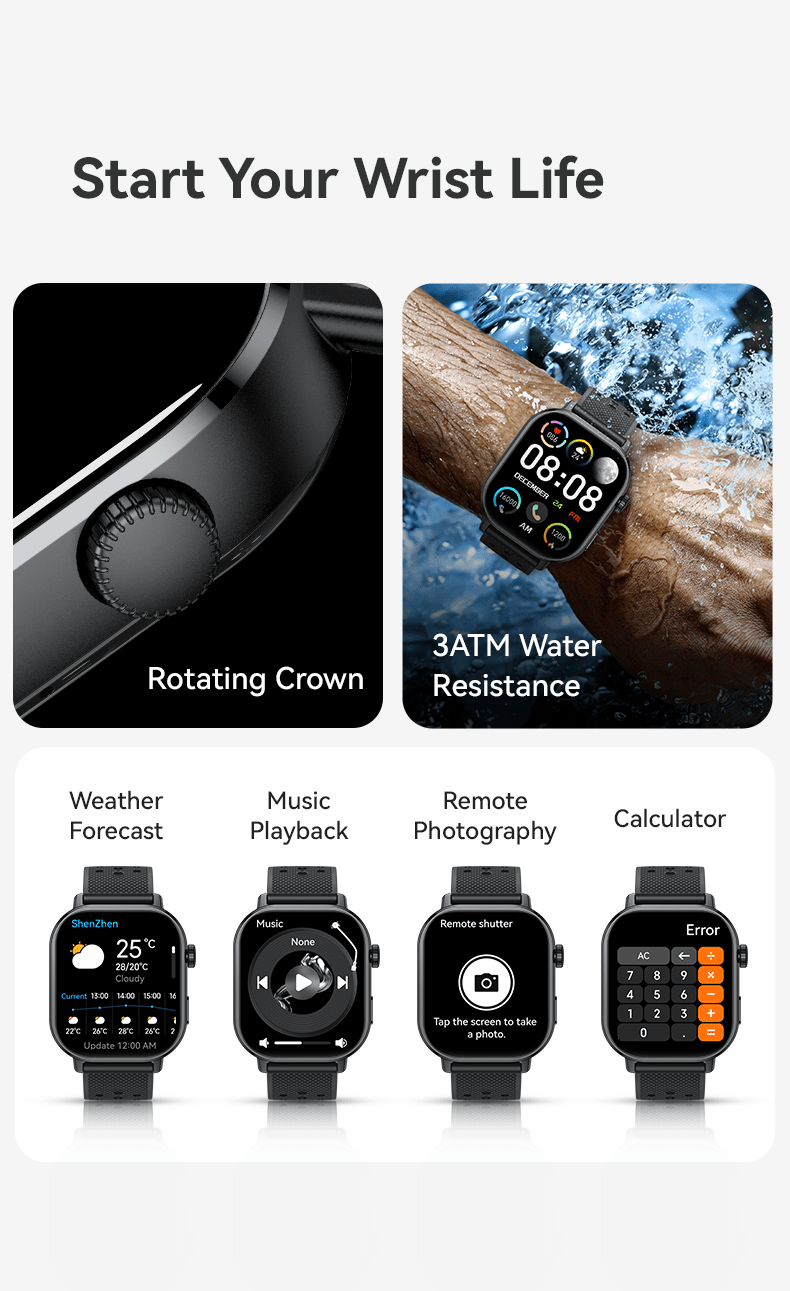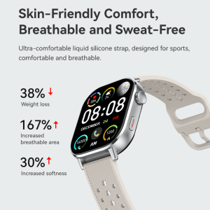 Built with a robust alloy case and flexible silica gel band, this smartwatch withstands daily wear while maintaining comfort. The 3 ATM waterproof rating ensures resistance to splashes, rain, and brief immersion—suitable for active lifestyles. Magnetic charging enhances portability and reduces connector wear, while the high-resolution AMOLED display offers crisp visibility in varied lighting conditions, supporting always-on usability without compromising the 4-day battery life.