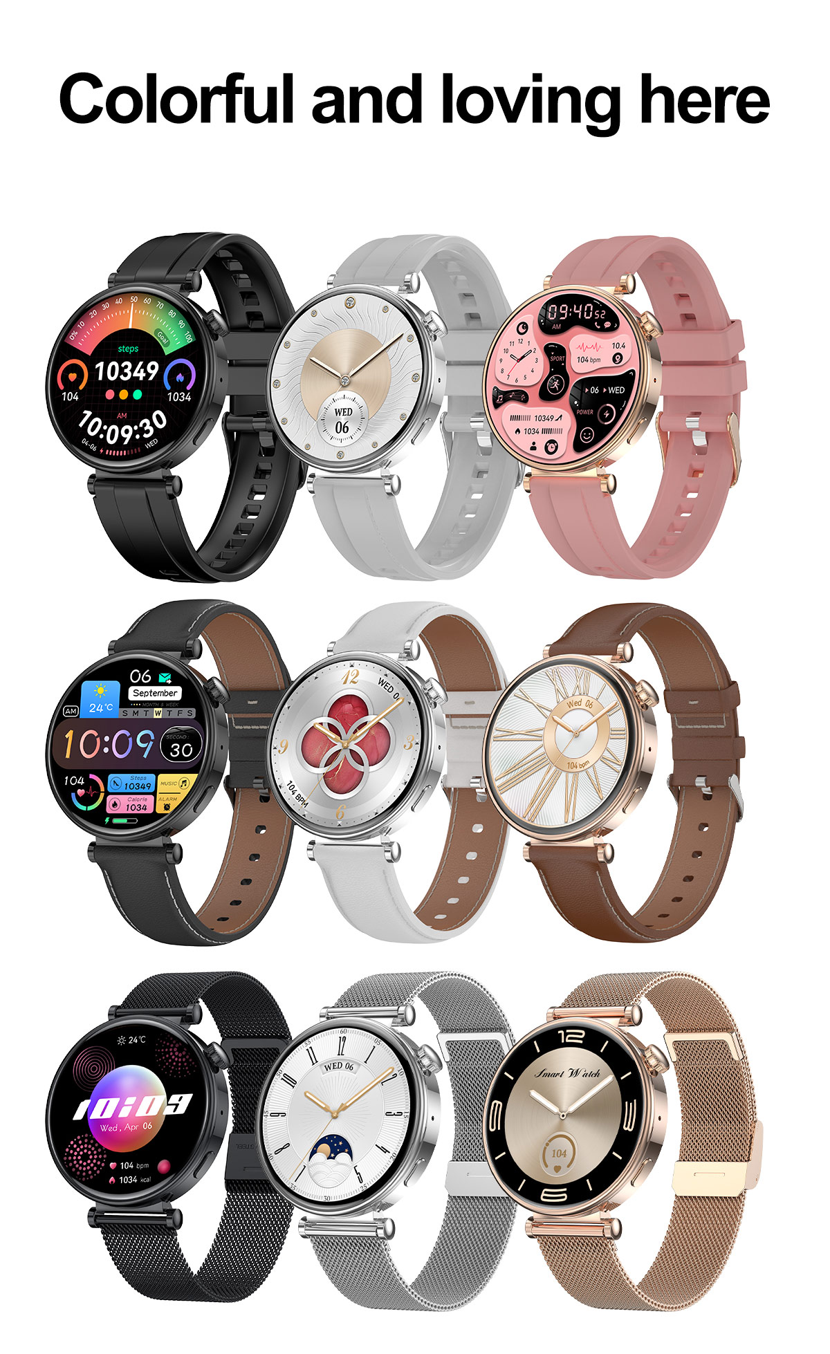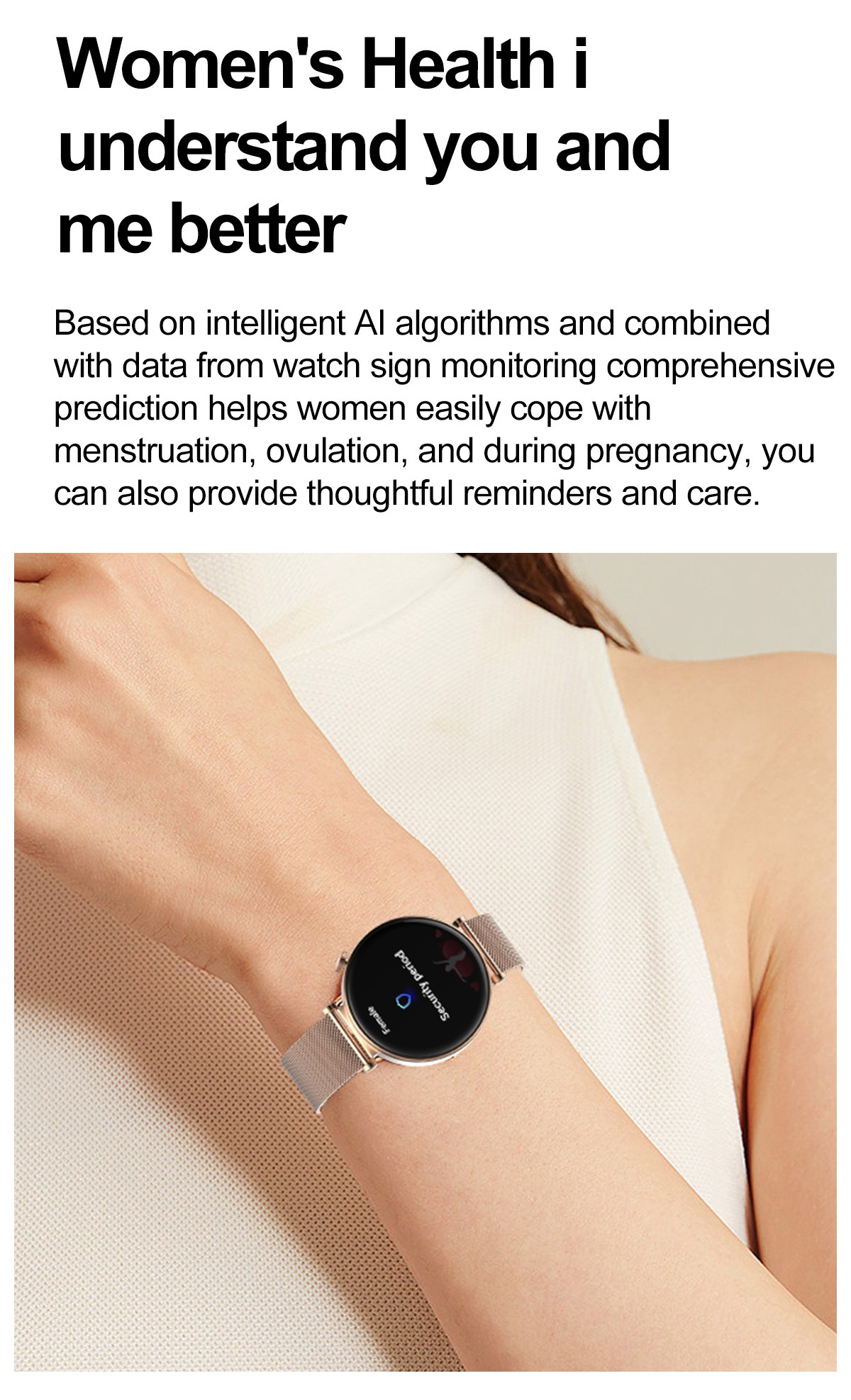 Ideal for women-focused e-commerce platforms, boutique electronics retailers, corporate wellness programs, fitness studios, and gift markets. Also suitable for health-conscious B2B buyers in pharmacy chains, department stores, and digital lifestyle brands seeking stylish yet functional wearable tech with advanced biometric capabilities.