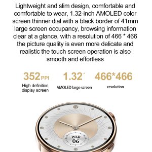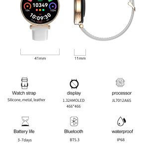 The Fashion Smart Watch with Blood Oxygen Monitor combines aesthetic design with comprehensive health and connectivity features for professional and personal use. Built with a metal case and leather strap, it offers IP68-rated water and dust resistance, an AMOLED touchscreen, and advanced biometric tracking—including blood oxygen saturation, blood pressure, heart rate, sleep patterns, and menstrual cycles—making it a versatile wearable for female users in health-conscious retail and wellness markets.