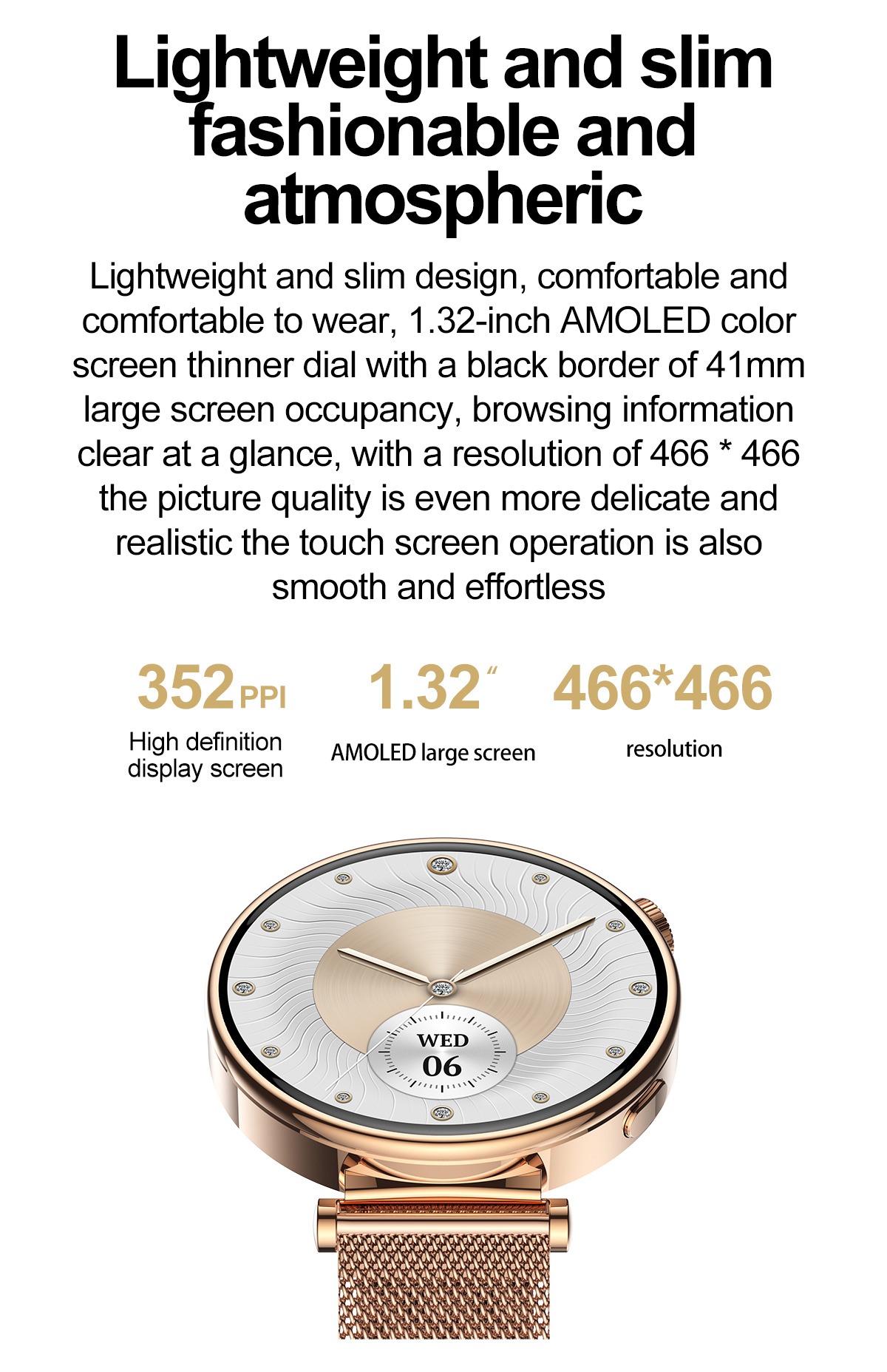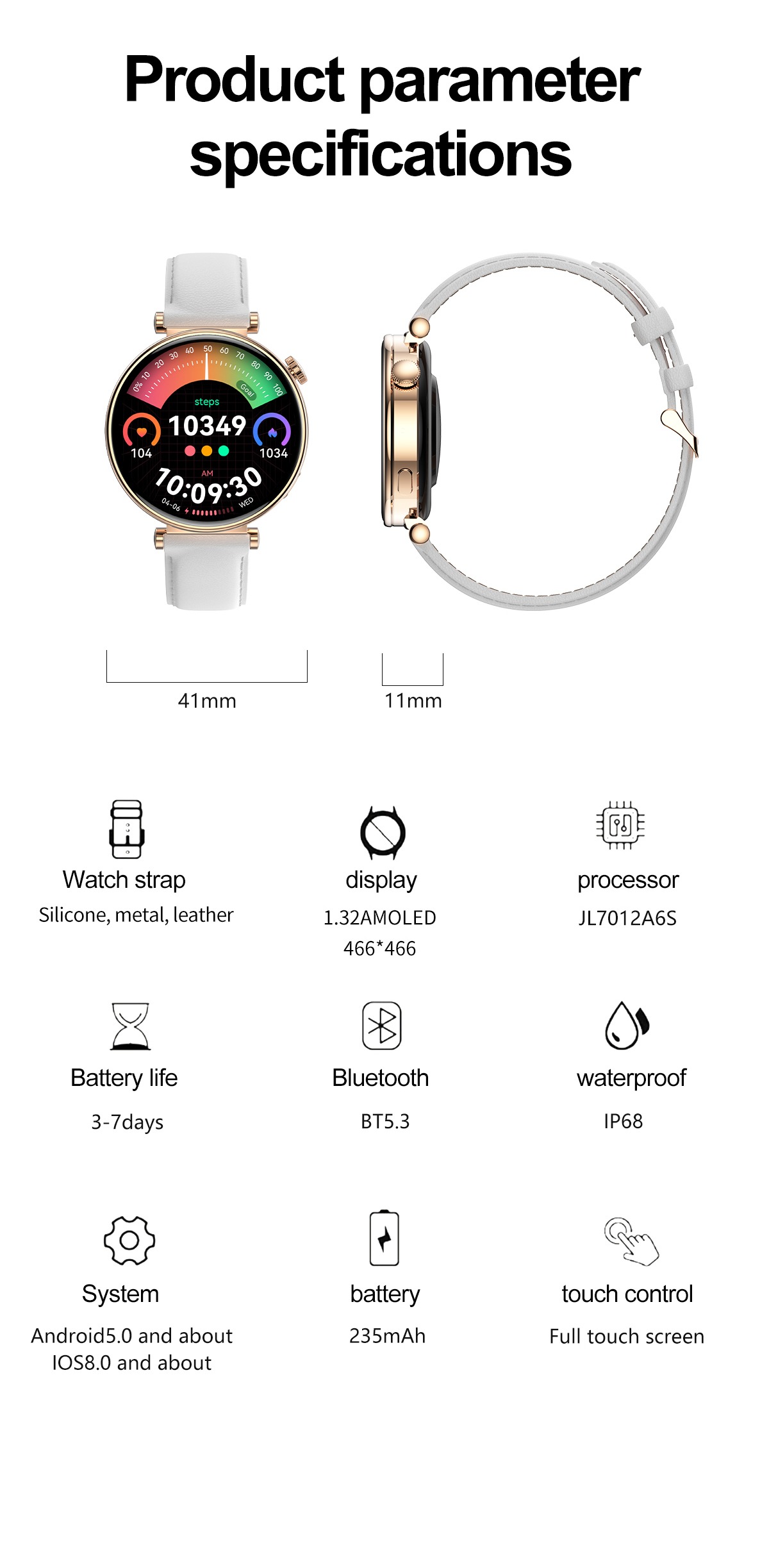 | Processor: | JL7012A6S | Display: | 1.32” AMOLED screen/466*466 |