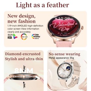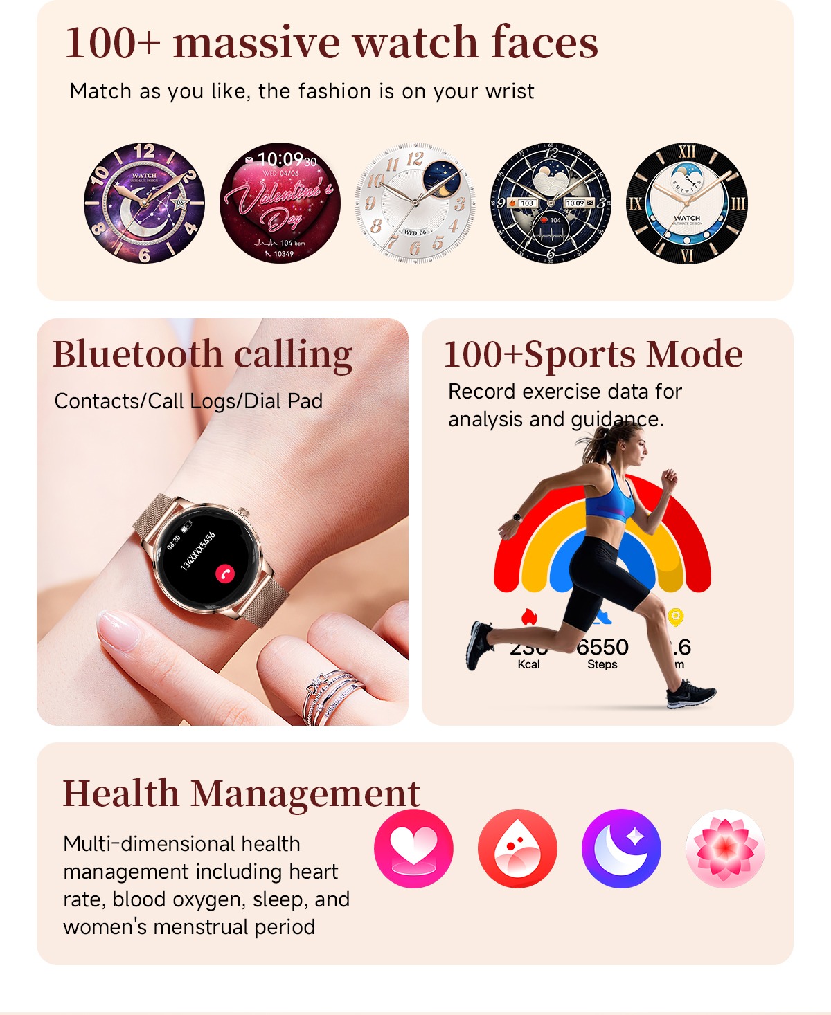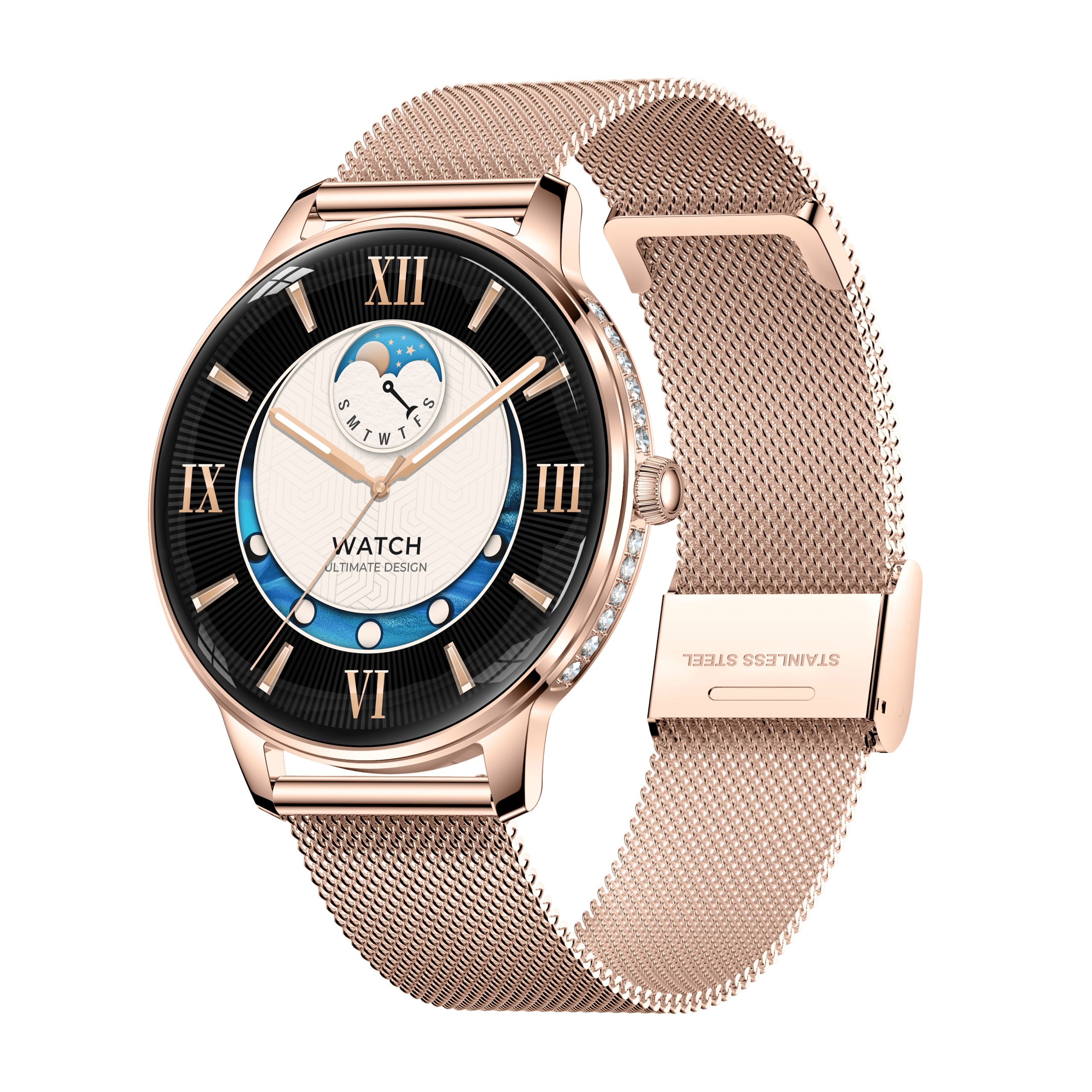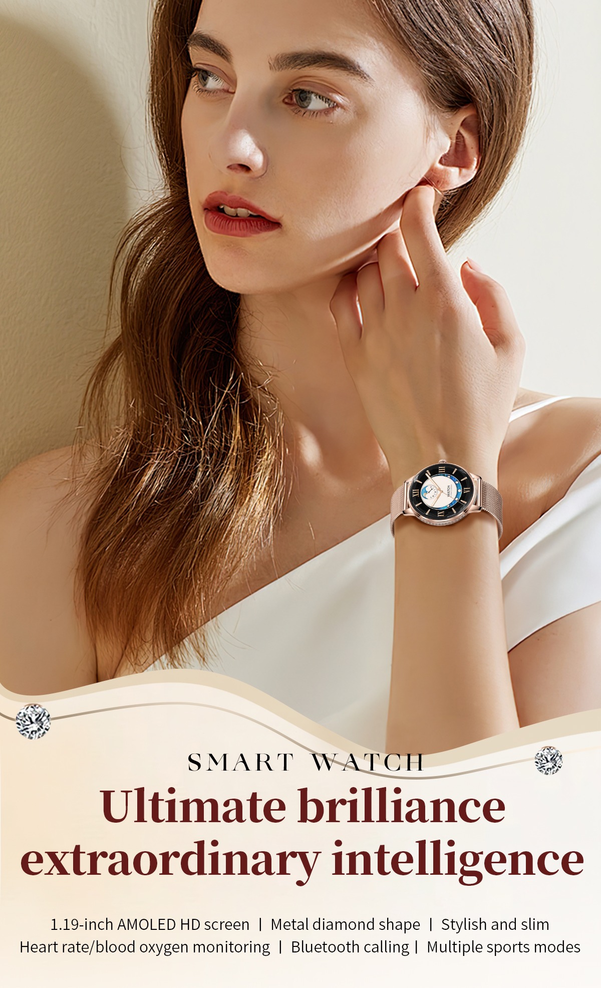This smartwatch is ideal for women’s fashion electronics retailers, fitness-focused e-commerce platforms, health & wellness boutiques, and telecom accessory distributors. It also suits corporate gifting programs and private-label health tech brands targeting female demographics aged 18–45 seeking style-integrated functionality.