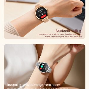 A: Yes, it features a 35mm ultra-compact round body, specifically designed to fit smaller women’s wrists comfortably, avoiding the bulky feel of standard oversized smartwatches that don’t suit delicate frames.